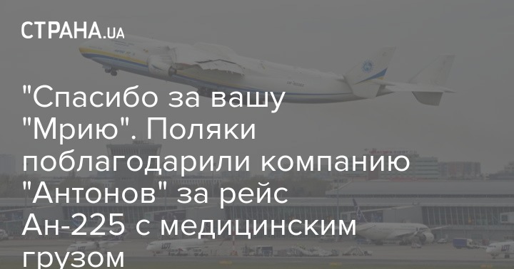 Аэропорт имени Шопена в Варшаве выразил благодарность украинской авиакомпании "Антонов" за то, что самолет Ан-225 "Мрия" доставил в Польшу груз медицинского назначения для борьбы с коронавиурсом Covid-19.