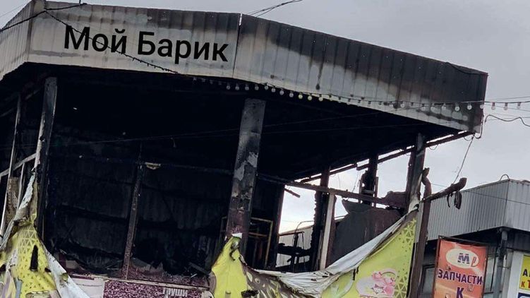 Ночью на рынке "Барабашово" в Харькове сгорел магазин. Фото: t.me/MyBarik1996