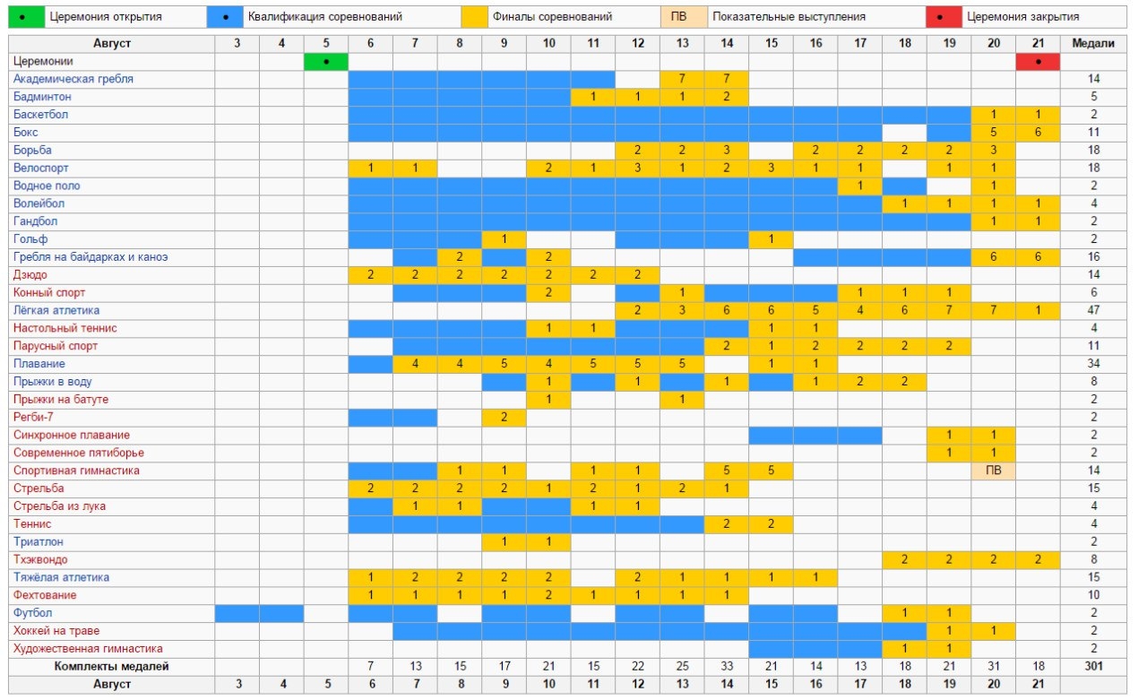 Расписание Олимпиады 2016 в Рио-де-Жанейро (Бразилия)