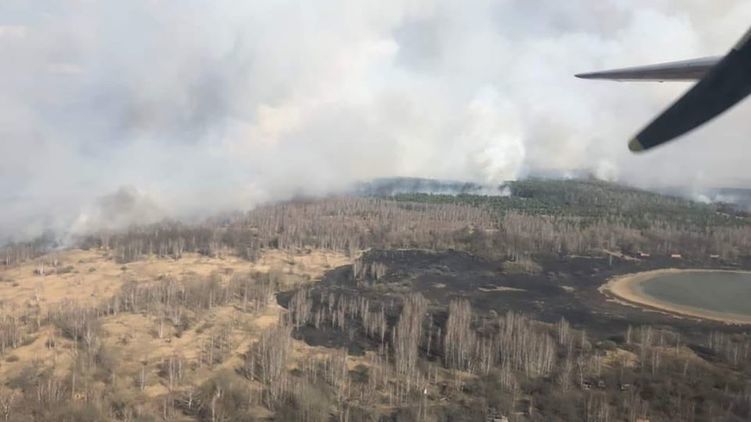 Пожар в Чернобыльской зоне. Фото: facebook.com/DSNSKyiv