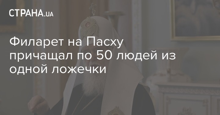 "В храме выстраивается очередь на благословение перед причастием. Люди подходят к священнику, он прикладывает крест ко лбу, а затем все по очереди целуют Библию. После благословения Филарет по очереди причащает примерно 50 человек из одной ложки", - пишет издание.