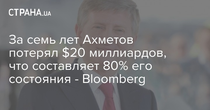 За семь лет Ахметов потерял $20 миллиардов, что составляет 80% его состояния - Bloomberg