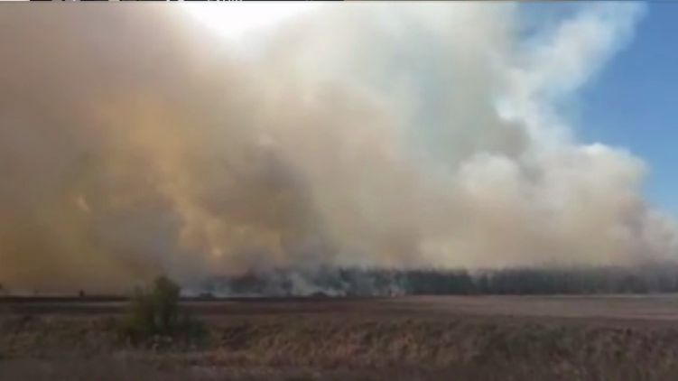 Дым закрывает даже солнце. В 50 км от Киева начался масштабный лесной пожар. Видео