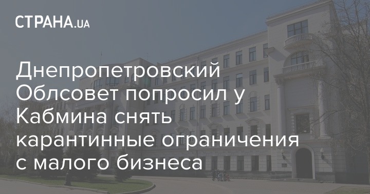 Днепропетровский областной совет обратился в Кабинет Министров Украины с предложением снять карантинные ограничения, введенные из-за коронавируса, для малого бизнеса в Днепропетровской области. Ослабить действующий режим власти города хотят уже с 11 мая, когда прогнозируют начало смягчения карантина по всей стране.