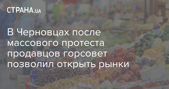 Как сообщала "Страна", в регионах Украины прошла волна протестов из-за закрытия рынков. Так, в Черновцах предприниматели с местных рынков вышли к обладминистрации с требованием разрешить им работать в условиях карантина.