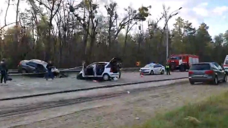 Опубликовано видео с места смертельного ДТП в Вышгороде, где лоб в лоб столкнулись два авто