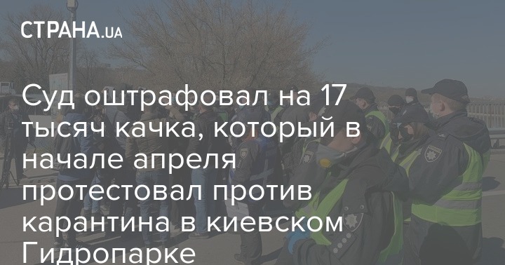 В Киеве суд оштрафовал за нарушение карантина мужчину, который 6 апреля принимал участие в акции протеста в Гидропарке. Теперь он должен заплатить 17 тысяч гривен.