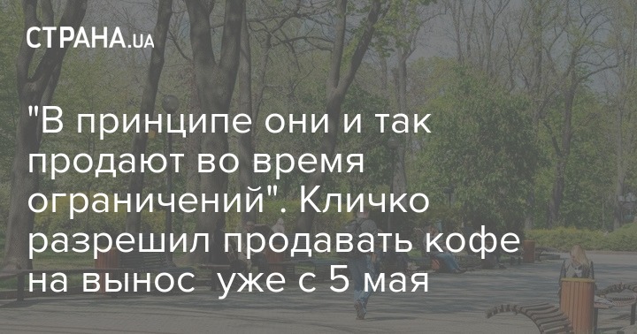 "В принципе они и так продают во время ограничений". Кличко разрешил продавать кофе на вынос уже с 5 мая