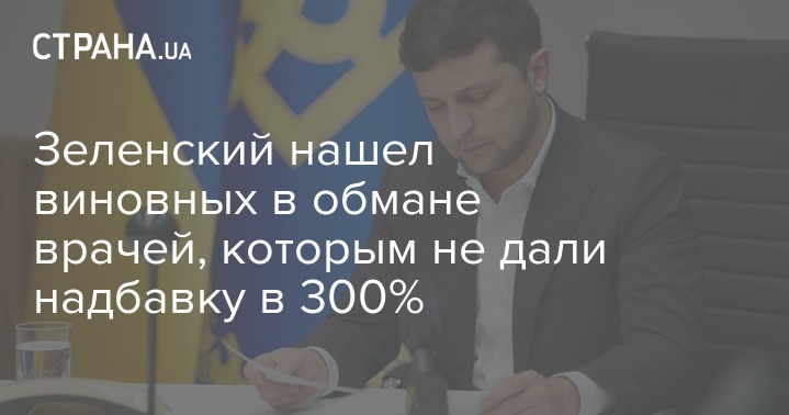 Президент Украины Владимир Зеленский заявил, что нашел виновных в обмане врачей, которым так и не выплатили надбавку в 300%.