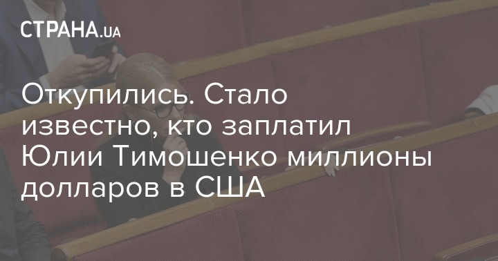 Откупились. Стало известно, кто заплатил Юлии Тимошенко миллионы долларов в США
