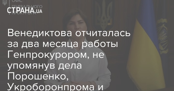 Венедиктова отчиталась за два месяца работы Генпрокурором, не упомянув дела Порошенко, Укроборонпрома и Стерненко. Видео