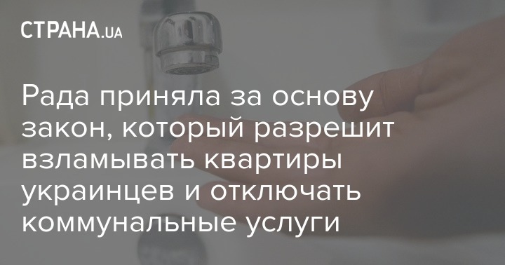 В среду Верховная Рада приняла в первом чтении проект закона №2458 об урегулировании отдельных вопросов в сфере предоставления жилищно-коммунальных услуг. Документ разрешает входить в жилище, чтобы предотвратить аварию или прекратить предоставлять коммунальные услуги.