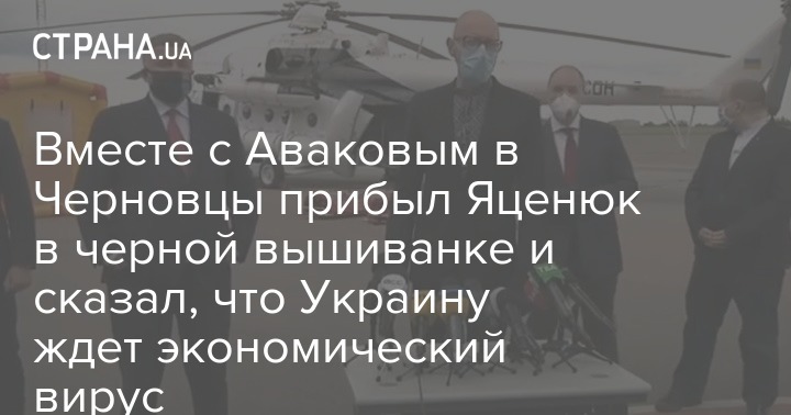 В своей краткой речи одетый в черную вышиванку, костюм и защитные перчатки Яценюк поблагодарил правительство за то, что оно обратило внимание на его родную Черновицкую область, которая больше остальных страдает из-за эпидемии коронавируса. Затем он сказал дежурные слова о том, что в эпидемию нужно поддерживать медиков.