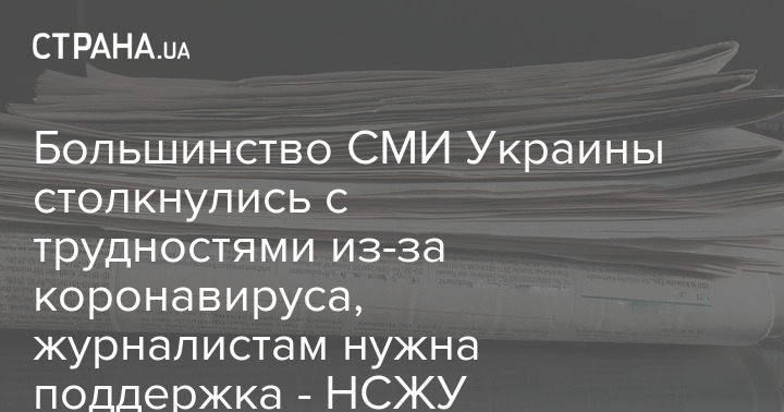 В Украине из-за карантина, введенного в связи с эпидемией коронавируса, 82% редакций СМИ столкнулись со значительными экономическими трудностями. Журналисты сталкиваются с сокращениями, урезанием зарплат и вынуждены уходить в неоплачиваемые отпуска. Национальный союз журналистов Украины призывает президента, Верховную Раду и Кабмин поддержать украинские медиа в период пандемии Сovid-19.