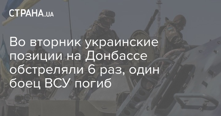 Во вторник украинские позиции на Донбассе обстреляли 6 раз, один боец ВСУ погиб