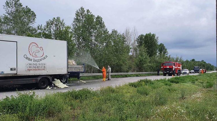 В Харьковской области на дорогу из грузовика вылилась соляная кислота. Фото: Фейсбук