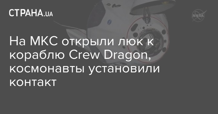 Экипаж Международной космической станции (МКС) открыл люк станции, который ведет к космическому кораблю Crew Dragon. Космонавты успешно установили контакт.
