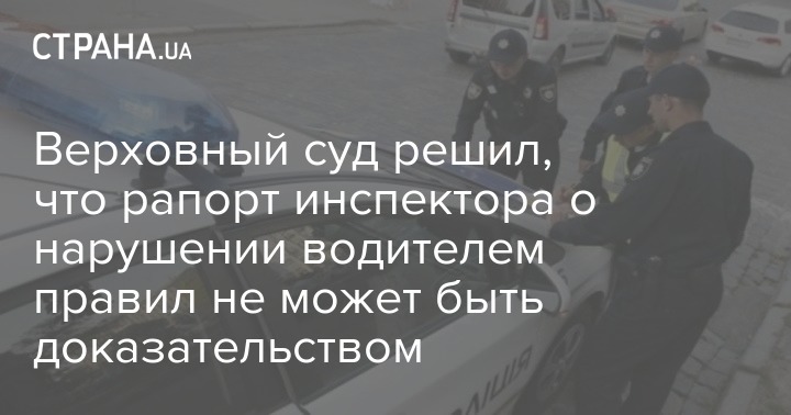 Верховный суд решил, что рапорт инспектора о нарушении водителем правил не может быть доказательством