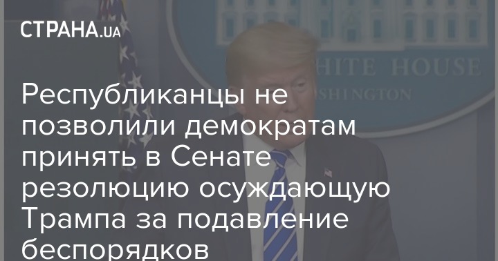 Лидер сенатского большинства республиканец Митч Макконнелл заблокировал резолюцию демократов, осуждающую президента США Дональда Трампа за подавление протестов возле Белого дома.