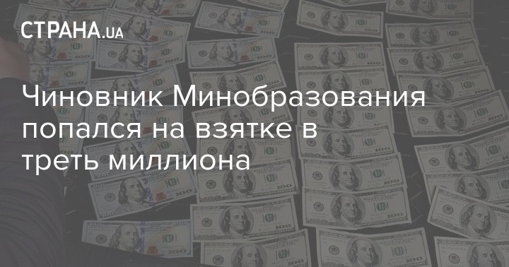 Генеральный директор одного из Директоратов Министерства образования и науки Украины был задержан во время получении взятки в 300 000 гривен. Правоохранители подозревают, что именно эту сумму чиновник требовал за победу в конкурсе, где на кону стояли с 3 миллиона гривен.