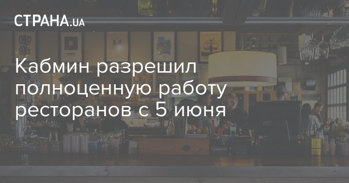Кабмин разрешил полноценную работу ресторанов с 5 июня