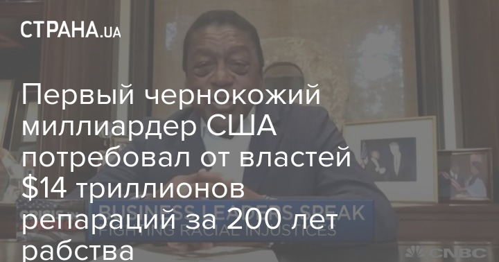 Основатель компании Black Entertainment Television и первый чернокожий миллиардер в истории США Роберт Джонсон заявил,  что правительство США должно выплатить афро-американцам $14 триллионов репараций за рабство. По его мнению, это поможет уменьшить расовое неравенство в стране.