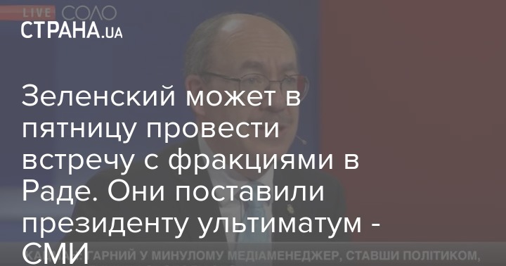 Зеленский может в пятницу провести встречу с фракциями в Раде. Они поставили президенту ультиматум - СМИ
