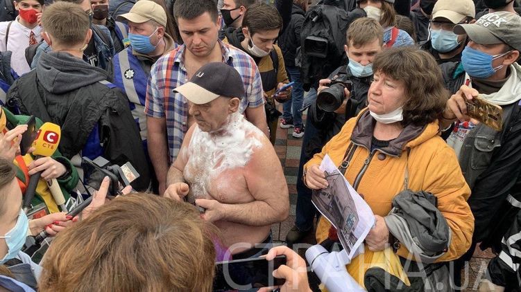Во время акции протеста под верховной Радой, которой сопровождается сегодняшнее выступление главы МВД Арсена Авакова в парламенте, житель Каховки Юрий Ляшенко попытался устроить акт самосожжения из-за того, что полиция лишила его семью жилья.