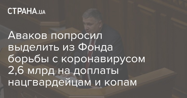 В конце мая министр внутренних дел Арсен Аваков обратился к премьеру Денису Шмыгалю с просьбой выделить из Фонда борьбы с коронавирусом 2,6 млрд гривен на доплаты структурам МВД во время карантина.