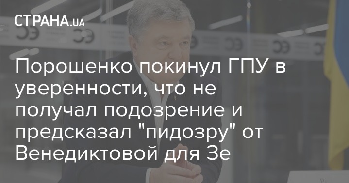 "Мы в любое время готовы приехать для получения подозрения. Мы уверены, что по сегодняшним действиям госпожа Венедиктова получила конкретное указание из ОП, а именно от Зеленского. Таким образом Венедиктова хочет вручить подозрение двоим президентам - Порошенко и Зеленскому", - предрек Порошенко.