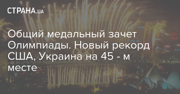 Общий медальный зачет Олимпиады. Новый рекорд США, Украина на 45 - м месте