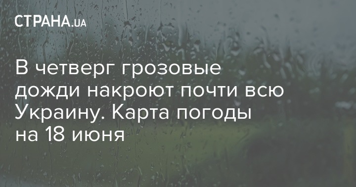 В четверг грозовые дожди накроют почти всю Украину. Карта погоды на 18 июня