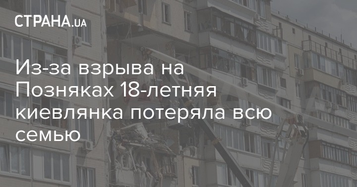 Целая семья погибла в результате взрыва, который прогремел в воскресенье, 21 июня, в столичной многоэтажке на Позняках на улице Крушельницкой. В живых осталась только 18-летняя девушка Настя, потерявшая отца, мать  и брата. Об этом в соцсети написал родственник этой семьи Роман Савчук.