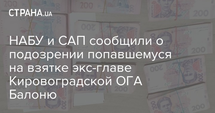 НАБУ и САП сообщили о подозрении попавшемуся на взятке экс-главе Кировоградской ОГА Балоню