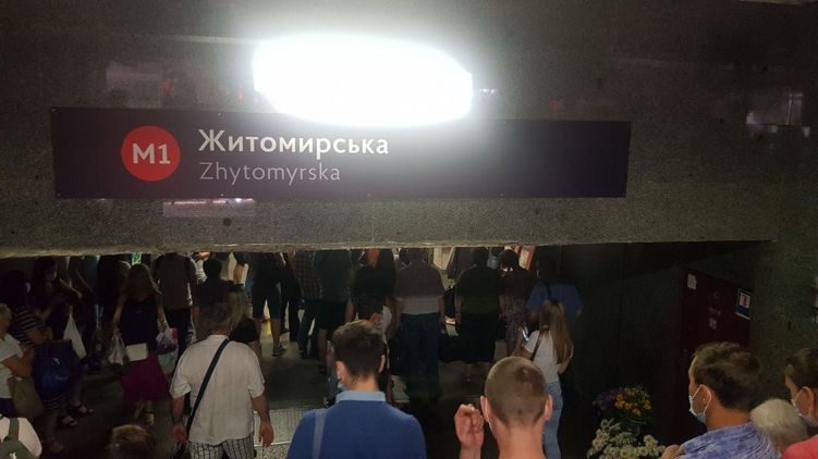 Корреспонденты "Страны" передают, что у станции "Житомирская" из-за "минирования" образовалось большое скопление людей.