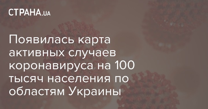 Центр общественного здоровья опубликовал данные по количеству активных случаев СOVID-19 на 100 тысяч жителей по областям Украины.