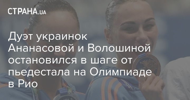 Дуэт украинских пловчих Лолиты Ананасовой и Анны Волошиной занял четвертое место в соревнованиях в синхронном плавании на Олимпиаде 2016. Об этом сообщает пресс-служба Национального олимпийского комитета Украины.