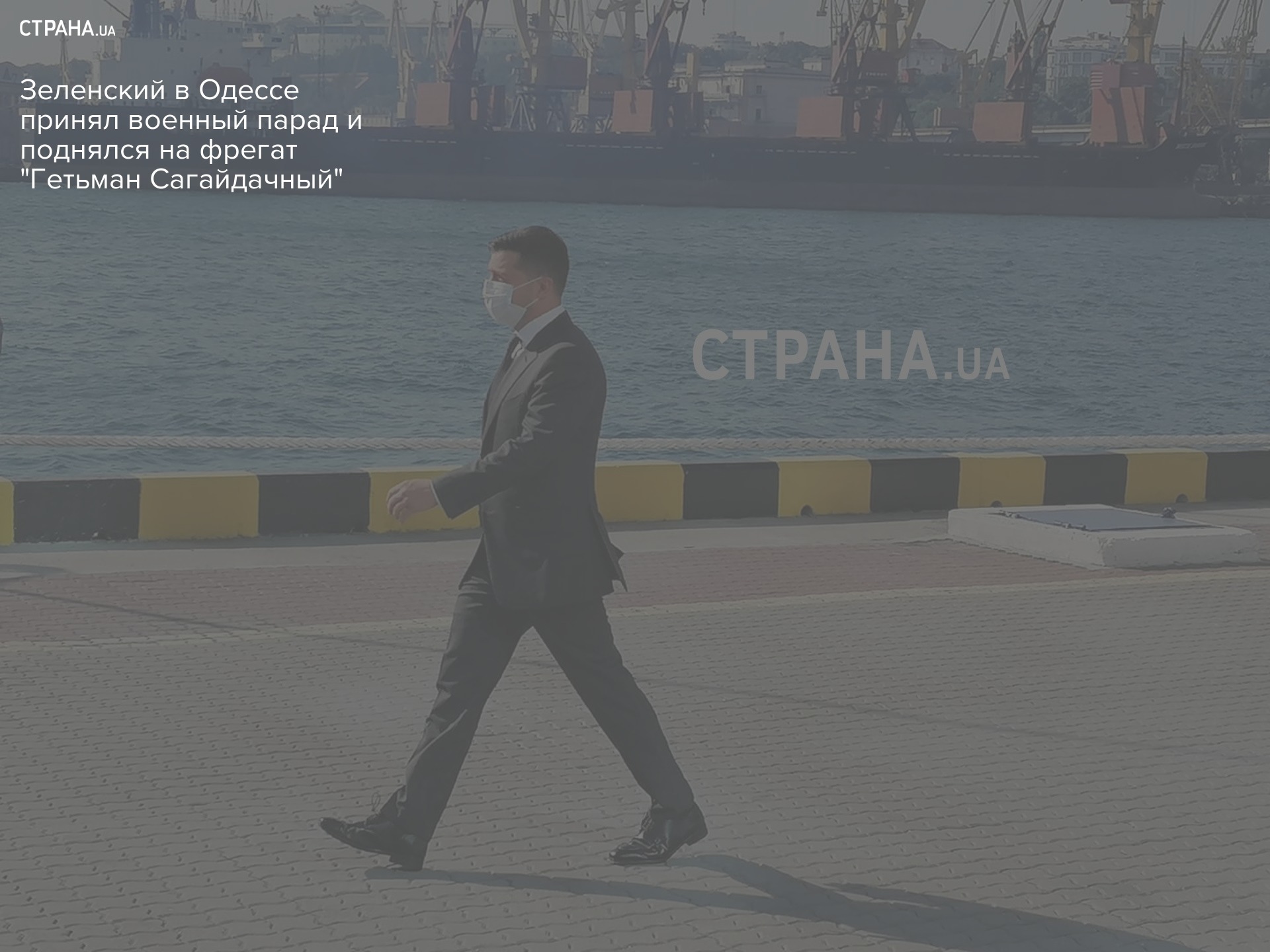 В воскресенье, 5 июля, президент Владимир Зеленский в одесском порту принял парад ВМСУ, а затем поднялся на фрегат "Гетьман Сагайдачный".