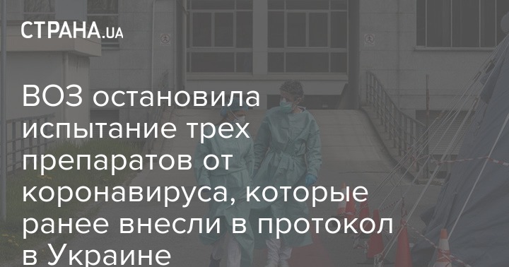 "Сегодня ВОЗ приняла рекомендацию Международного руководящего комитета Тестов солидарности о прекращении испытаний гидроксихлорохина и лопинавира/ритонавира", — говорится в сообщении.