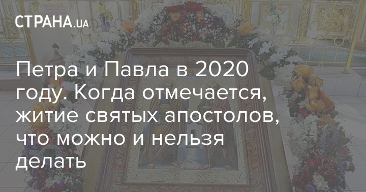 Праздник святых апостолов Петра и Павла выпадает на 12 июля. Это дата окончания Петровского поста и один из главных церковных праздников лета. Его дата не меняется из года в год и служит именинами обладателям имени Петр и Павел. Кстати, у наместника Киево-Печерской лавры - владыки Павла (в миру Петр Лебедь) - сегодня двойные именины