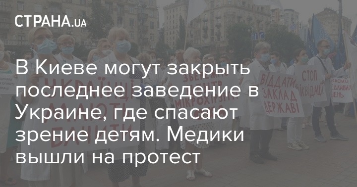 Сегодня, 7 июля, в 10:00 врачи киевского Центра микрохирургии глаза вышли на акцию протеста под Киевскую городскую государственную администрацию (КГГА) за сохранение уникальных медицинских учреждений. По словам участников акции, их центр - это последнее учреждение в Украине, где спасают детям зрение. Но из-за отсутствия финансирования медцентр может закрыться.