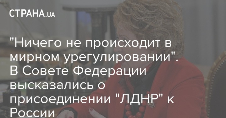 "Разговоры возникают на фоне того, что ничего не происходит в мирном урегулировании ситуации в "ДНР" и "ЛНР", - сказала Матвиенко.