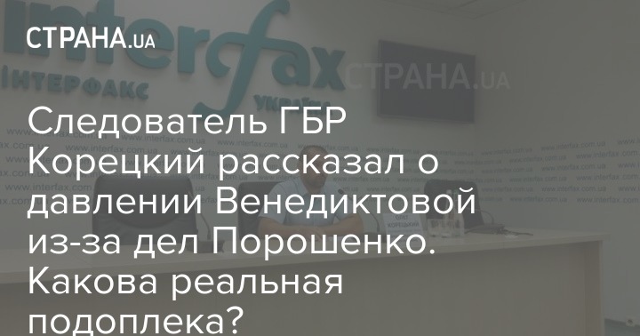 Сегодня, 9 июля, в Киеве началась пресс-конференции Олега Корецкого руководитель следственной группы Государственного бюро расследований, который заявил, что Ирина Венедиктова на посту исполняющей обязанности начальника ГБР оказывала на него давление с целью открытия уголовных производств против экс-президента Петра Порошенко.