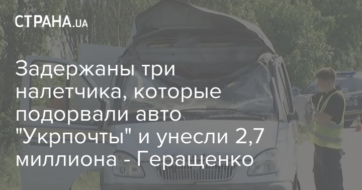 "Пол часа назад сотрудниками уголовного розыска Национальной полиции были задержаны трое граждан, обоснованно подозреваемые в дерзком ограблении автомобиля "Укрпочты" на Полтавщине. Тех самых, что украли 2 миллиона 700 тысяч гривен", - сообщил Геращенко.