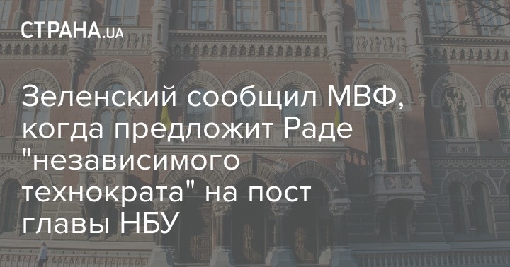 Зеленский сообщил МВФ, когда предложит Раде "независимого технократа" на пост главы НБУ