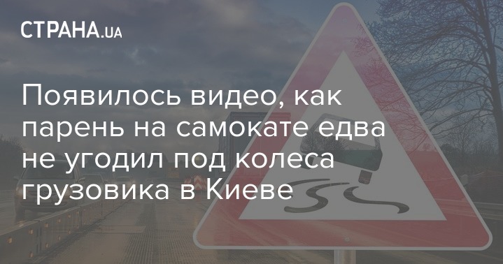 Появилось видео, как парень на самокате едва не угодил под колеса грузовика в Киеве