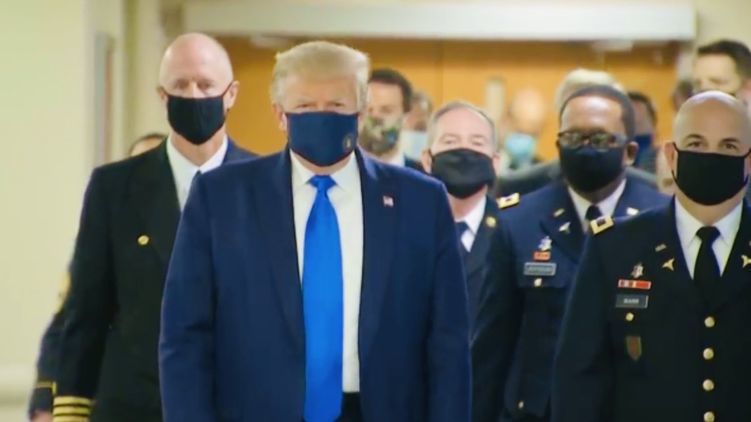 Напомним, пезидент США Дональд Трамп впервые с начала пандемии коронавируса появился на публике в защитной маске. Он посетил Национальный военно-медицинский центр имени Уолтера Рида недалеко от Вашингтона и удивил прессу своим видом. Маска президента тканевая, темно-синяя, в ее левой нижней части нанесена золотая президентская печать. "Я думаю, это замечательно - носить маску. Я никогда не был против масок", - заявил он на встрече.