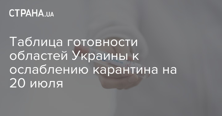 Минздрав опубликовал таблицу готовности областей к смягчению карантина. По состоянию на 20 июля к ослаблению ограничений не готовы 10 регионов.