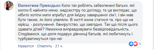 Бывший директор Госдепартамента по усыновлению и защите прав ребенка Людмила Волынец написала, что каждый день в Украине оставляют двух детей в роддомах, но она верит в счастливую судьбу девочки.