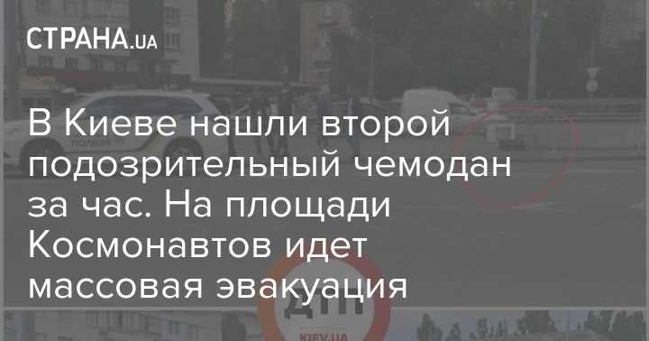 "В Киеве на площади Космонавтов возле подземного перехода обнаружен одинокий чемодан с неизвестным содержимым. На месте полиция и взрывотехники", - говорится в описании фото.